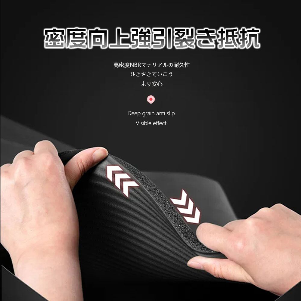 ヨガマット素材/材質NBR(ニトリルゴム)この商品についてこんな方におすすめ:床でトレーニングする人々。製品はハニカム発泡技術を採用し、高品質NBR素材と結合して製品の弾力性と快適感を高めています。ヨガの練習者にこのマットを勧めません。柔らかいのでバランスの練習中に怪我をする可能性があります。おすすめの運動:ヨガ、ストレッチ、筋トレ、プラティ、マタニティヨガ、トレーニングなど。このヨガマットはトレーニング者に地面防音と滑り止め防振作用を提供して、運動中より安心できます。滑り止め対策:フローリング・タイル・石など滑りやすい場合、ヨガマットを裏返して、滑らかな面を上に、凸凹のある面を下にして使ってみてください。 コルクカーペット畳など滑りにくい場合、凸凹のある面を上に、滑らかな面を下に使ってください。